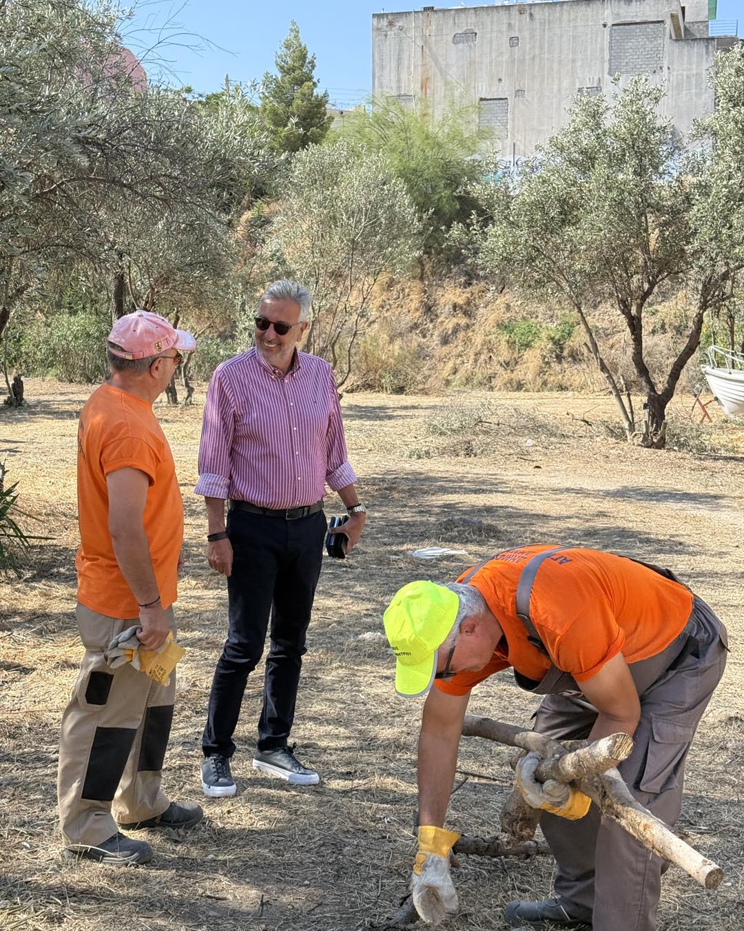 Ο Δήμαρχος Αγίου Δημητρίου, Στέλιος Μαμαλάκης, συνοδευόμενος από το νέο Αντιδήμαρχο Αυτεπιστασίας, Πρασίνου και Αστικής Πανίδας, Γιώργο Ταμπακόπουλο, επισκέφθηκε το σημείο, ενημερώθηκε για την πορεία των εργασιών και συνομίλησε με τα συνεργεία του Δήμου.