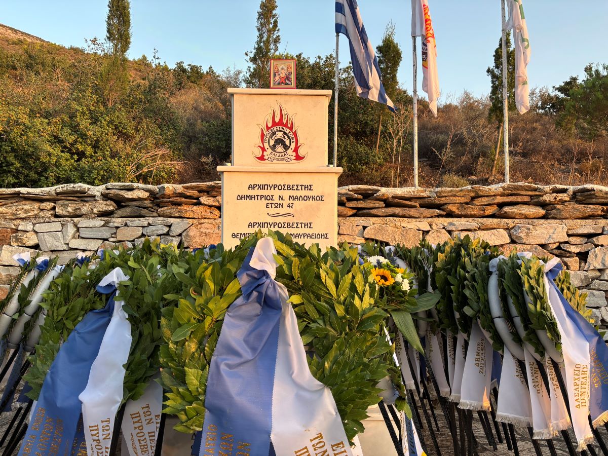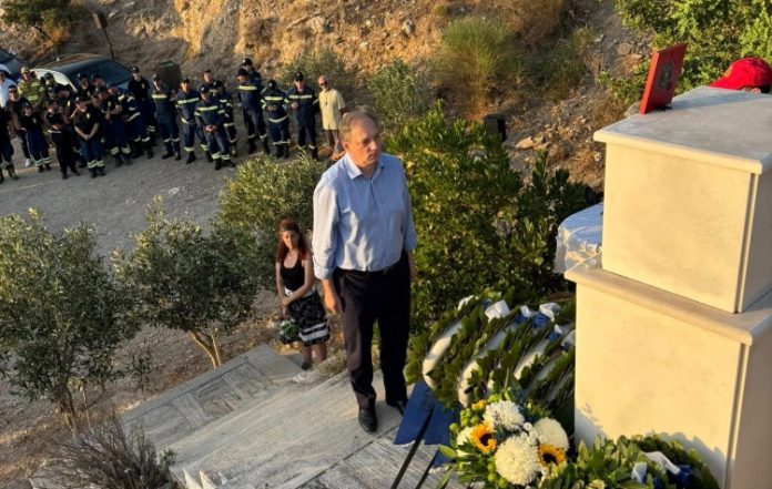 Κατάθεση στεφάνων στη μνήμη των πεσόντων Πυροσβεστών της μεγάλης δασικής πυρκαγιάς του Υμηττού, στις 22 Ιουλίου 1998
