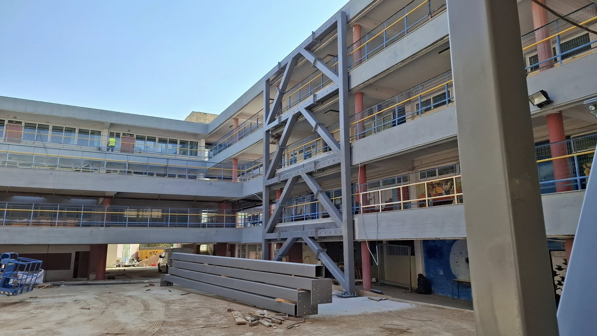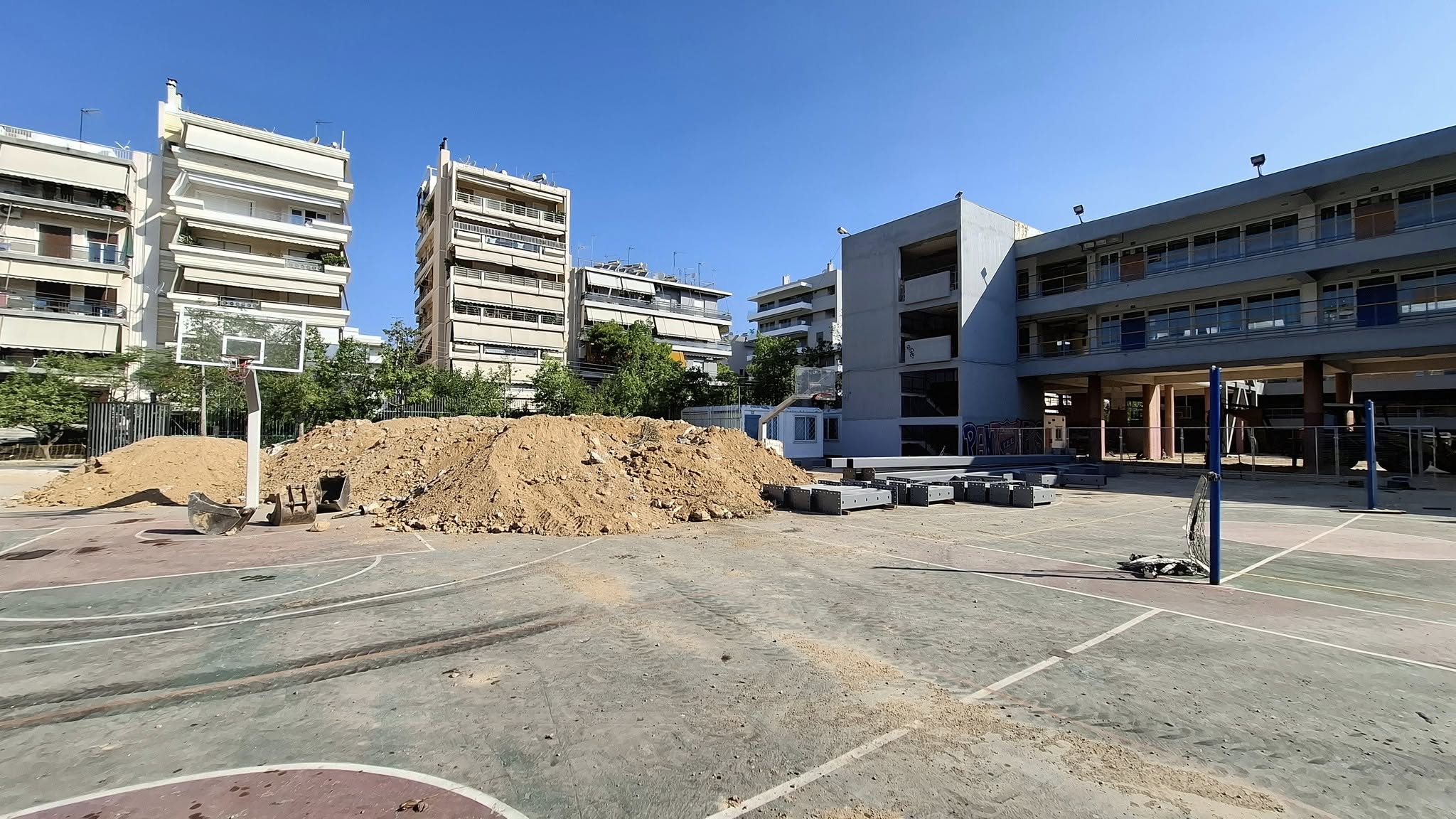 «Τρέχουμε…για να προλάβουμε το Σεπτέμβριο να λειτουργήσει το Σχολείο με συνέχιση εργασιών μικρής κλίμακας εσωτερικά και τμηματικά ανά πτέρυγα και αίθουσα», αναφέρει ο Δήμαρχος Γιώργος Κουτελάκης.