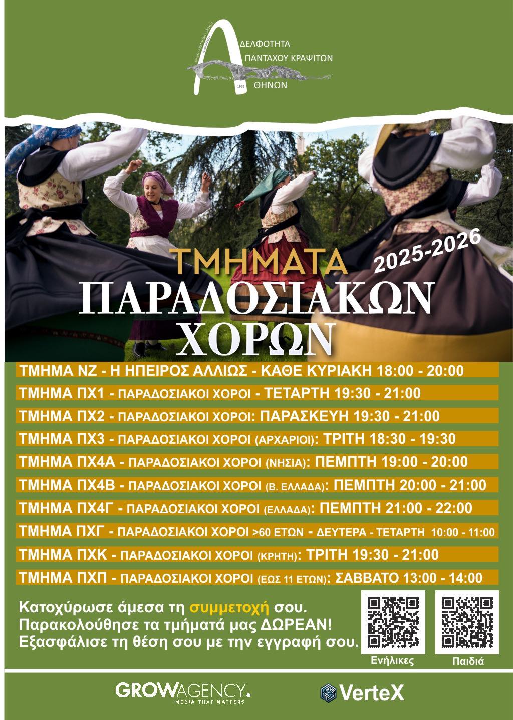Η πλατφόρμα των αιτήσεων θα παραμείνει ανοιχτή μέχρι τον Μάρτιο 2026 και η ετήσια Εγγραφή είναι €25 ανά τμήμα.