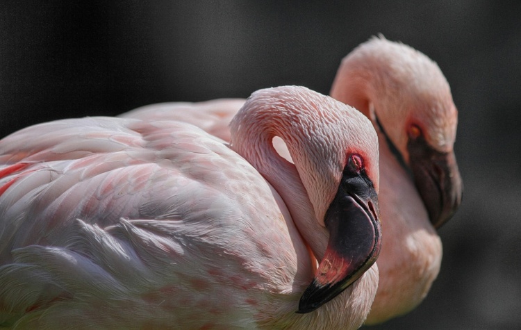 Έντονα και απαλά ροζ χρώµατα και κόκκινα και µωβ και βιολετί, και σκούρες πινελιές από τα γειτονικά δέντρα που τα πλαισίωναν, αλλά και λευκές ανταύγειες που σκορπίζονταν επάνω στο πλούσιο φτέρωµα των λεπτεπίλεπτων φλαµίνγκο… όλα αυτά ενωµένα µε µυστήριο και χίλιες απορίες, δικαιολογούσαν µε µια µατιά ότι πολύ σωστά αυτά τα πουλιά, από τα παλιά χρόνια µέχρι τις ηµέρες µας, είχαν κερδίσει τον τίτλο: «Τα πουλιά της αγάπης και του έρωτα». Βέβαια, ο λόγος αυτού του χαρακτηρισµού δεν οφείλεται µόνο στην αέρινη εµφάνιση τους, αλλά κυρίως στον τρόπο που ζουν, που ερωτεύονται, που πολλαπλασιάζονται, και στην έννοια της σταθερής και της απόλυτης αγάπης προς το ταίρι τους για όλη τους τη ζωή.