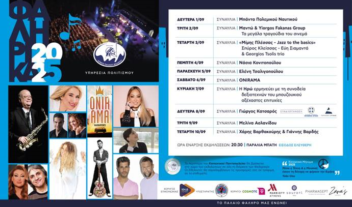 Αναλυτικά το πρόγραμμα του Μουσικού Φεστιβάλ «Φαληρικά 2025» (κάντε slide στις εικόνες):