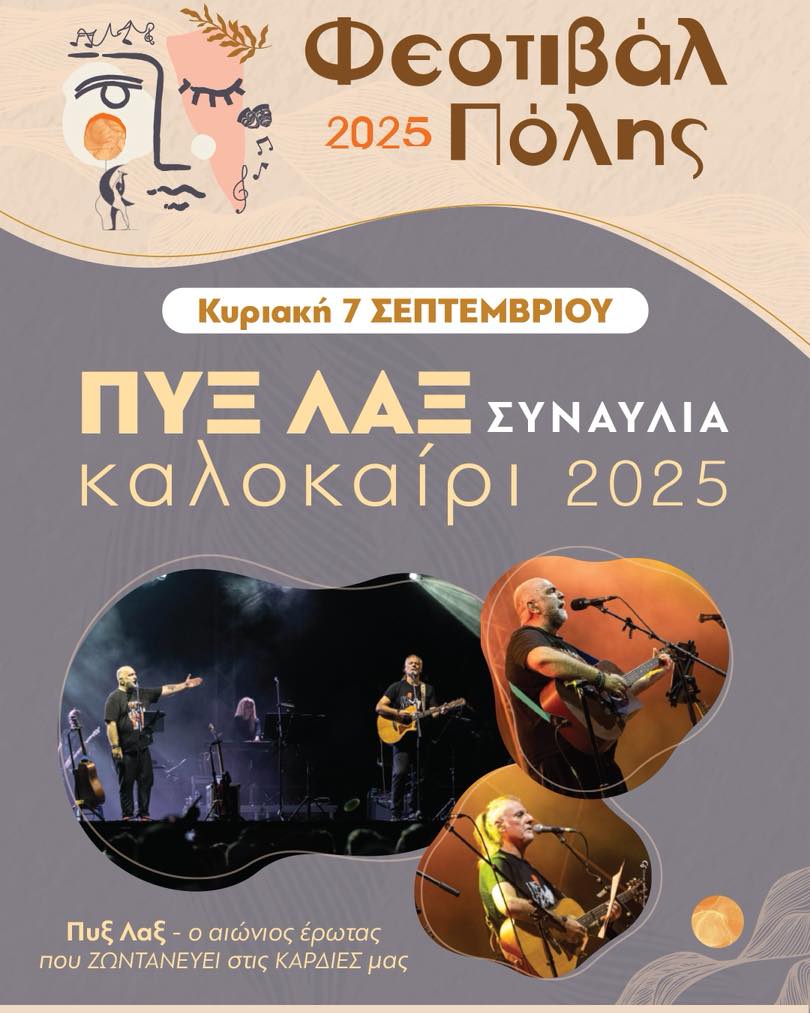 Ο Δήμος Αγίου Δημητρίου υποδέχεται τους Πυξ Λαξ, ένα από τα πιο αγαπημένα συγκροτήματα της ελληνικής μουσικής, για μια ξεχωριστή βραδιά, με ελεύθερη είσοδο.
