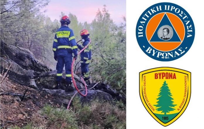 Η φωτιά εντοπίστηκε άμεσα από τους πυροφύλακες που βρίσκονται στην περιοχή και ακολούθησε άμεση κινητοποίηση του μηχανισμού Πολιτικής Προστασίας του Δήμου, σε συνεργασία με την Εθελοντική Ομάδα του Κέντρου Προστασίας Δασών & Φυσικού Περιβάλλοντος Βύρωνα.