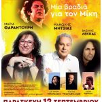 Το παρόν θα δώσουν η ιέρεια του Μίκη, Μαρία Φαραντούρη, που έδωσε έδωσε φωνή και χρώμα και ταύτισε την παρουσία της με το έργο του μεγάλη συνθέτη με τρόπο εμβληματικό.