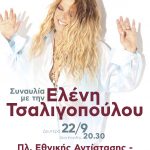 • Δευτέρα 22 Σεπτεμβρίου, πλ. Εθνικής Αντίστασης (Αγίου Γεωργίου)-Ταύρος, 20.30: Συναυλία με την Ελένη Τσαλιγοπούλου