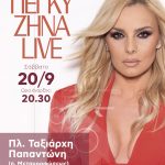 • Σάββατο 20 Σεπτεμβρίου, πλ. Ταξιάρχη Παπαντώνη (π. Μεταμορφώσεως), 20.30: Συναυλία με την Πέγκυ Ζήνα