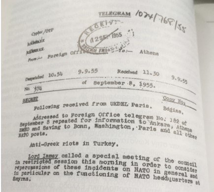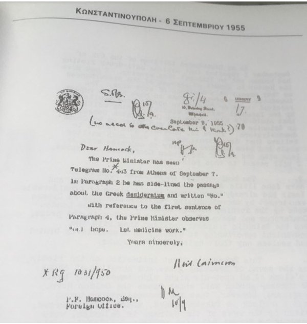 Τα γνωστά γεγονότα (Πογκρόμ) της 6ης Σεπτεμβρίου 1955 στην Κωνσταντινούπολη εναντίον των Ελλήνων τυχαία έλαβαν χώραν στις 6 του μηνός. Είχαν σχεδιαστεί για τις 9 Σεπτεμβρίου, για να συνέπιπταν με την τελική άλωση της Σμύρνης το 1922. Σχετικό κεφάλαιο στο βιβλίο μου «Από την Ένωση στην Κατοχή», που εξέδωσα το 1995 στη Λευκωσία, με χρηματοδότηση και πρόλογο του αείμνηστου μ. Αρχιεπισκόπου Κύπρου κ.κ. Χρυσοστόμου Α’. Τότε ακόμα δεν θυμάμαι να υπήρχαν επιβεβαιωμένες πληροφορίες για τον ρόλο των Βρετανών, πιστεύω ήμουν η πρώτη που είχε μιλήσει και γράψει σχετικά…