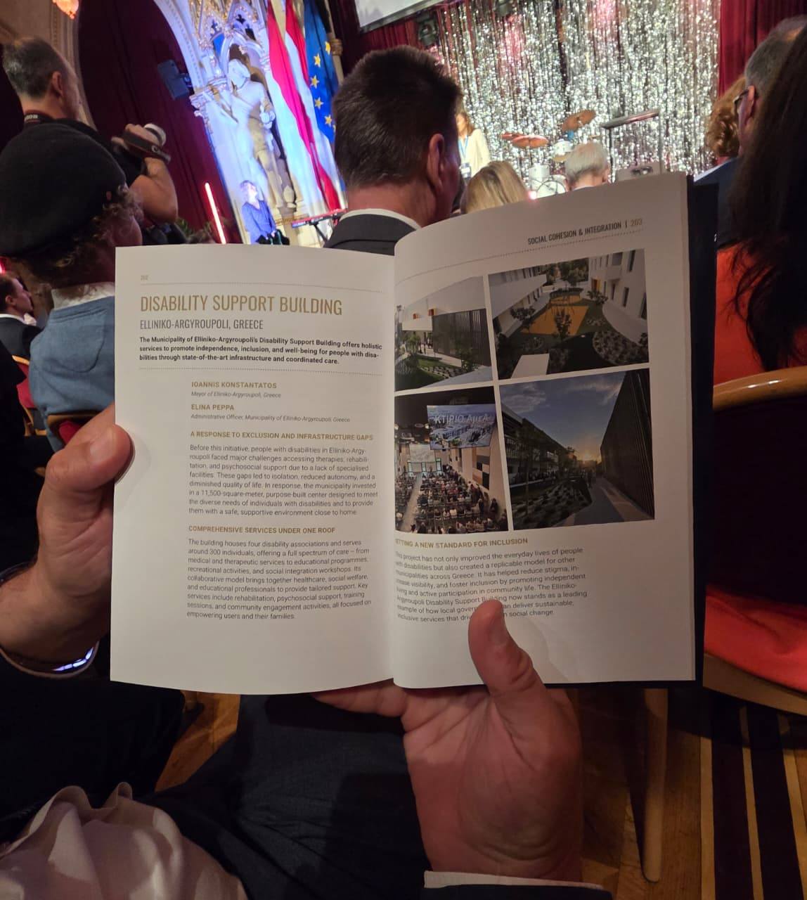«Σήμερα, στο ιστορικό Δημαρχείο της Βιέννης, στην αίθουσα εκδηλώσεων στα “Innovation in Politics Awards 2025”, ζήσαμε μια στιγμή που θα μείνει χαραγμένη στην ιστορία του Δήμου μας. Στην καρδιά της Ευρώπης, σε ένα θεσμό υπό την Ευρωπαϊκή Επιτροπή ανάμεσα σε 320 κορυφαία έργα από ολόκληρη την ήπειρο που προτάθηκαν και αξιολογήθηκαν, το Κέντρο Φροντίδας ΑμεΑ στο Ελληνικό κατέκτησε τη 2η θέση στην τελική δεκάδα της κατηγορίας “Social Cohesion & Integration”.