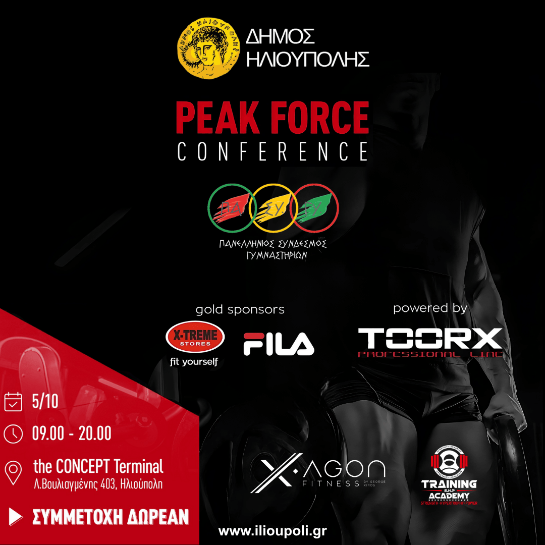 Έρχεται για πρώτη φορά στην Ελλάδα το Επιστημονικό Συνέδριο Άσκησης, Διατροφής & Αποκατάστασης Peak Force Conference, υπό την Αιγίδα του Δήμου Ηλιούπολης.