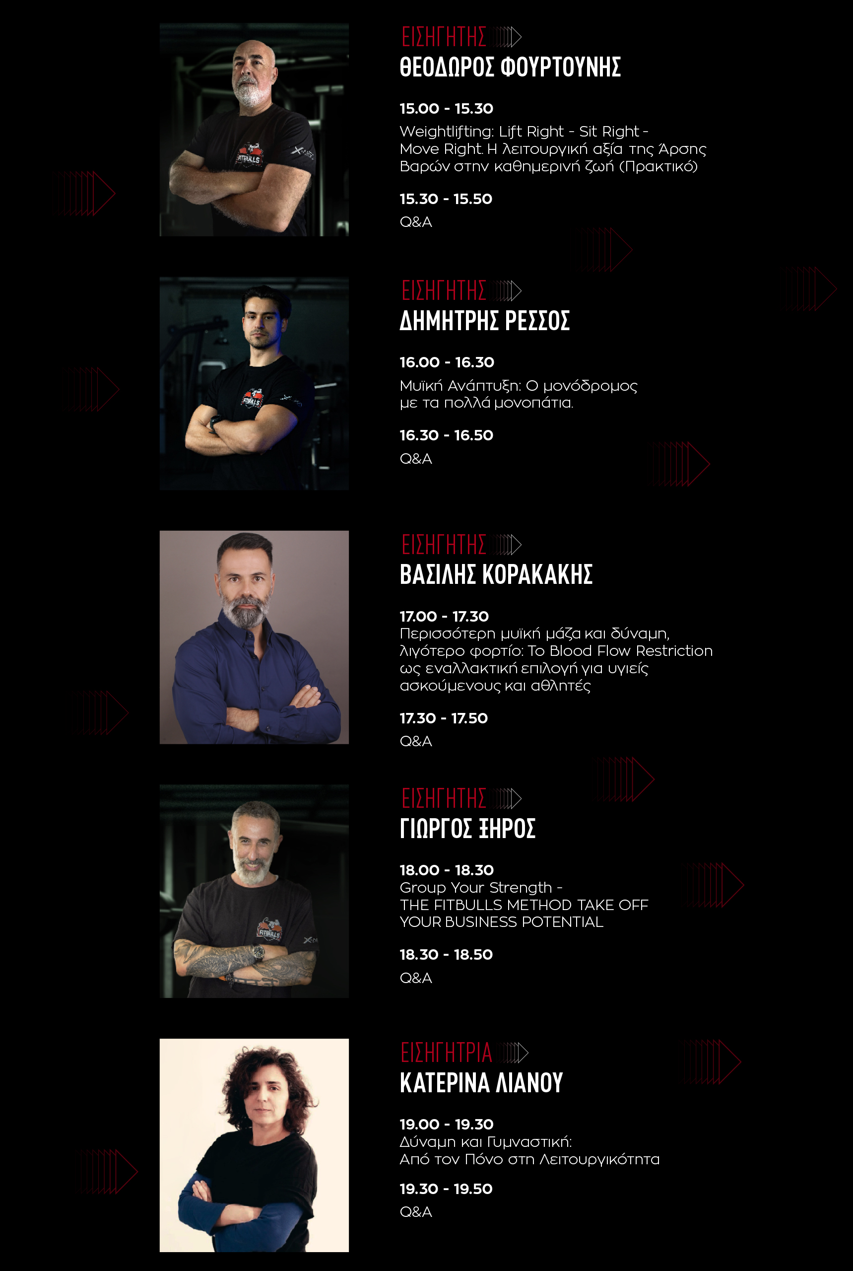 Οι κορυφαίοι επιστήμονες της Άσκησης, της Διατροφής, της Ιατρικής, της Φυσικοθεραπείας, θα παρουσιάσουν όλες τις νέες εξελίξεις στην προπόνηση ΔΥΝΑΜΗΣ, έγκυρα και αξιόπιστα με ΔΕΚΑ (10) υψηλής εξειδίκευσης, διαδραστικές παρουσιάσεις, με δυνατότητα Q&A. Οι πιο έγκυροι Έλληνες επαγγελματίες θα παρουσιάσουν τις νέες τάσεις που αφορούν τη βάση της προπονητικής, την προπόνηση δύναμης, ενώ θα δώσουν συμβουλές σε όλους τους παρευρισκόμενους.