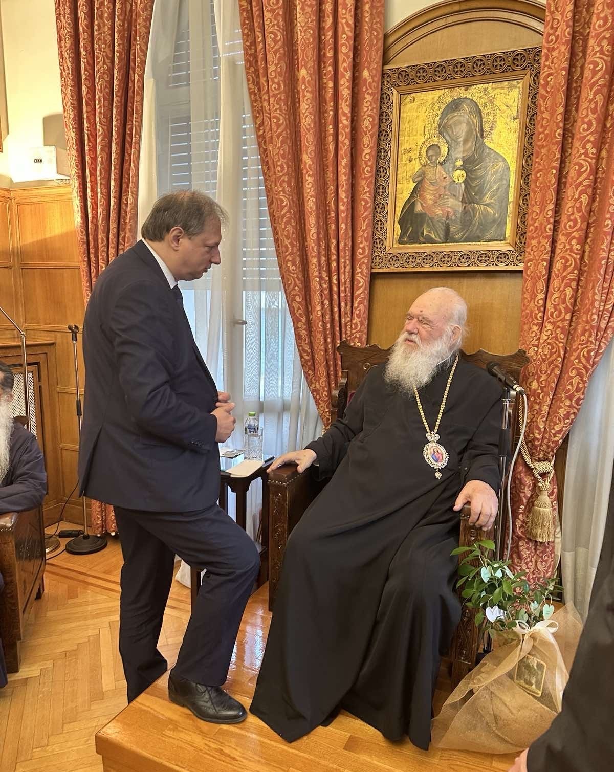 Μετά το μνημόσυνο επακολούθησε δεξίωση που παρέθεσε ο Αρχιεπίσκοπος Αθηνών και πάσης Ελλάδος κ.κ. Ιερώνυμος, στην Ιερά Αρχιεπισκοπή Αθηνών, στο περιθώριο της οποίας υπήρξε συνάντηση σε πολύ θερμό κλίμα με τον Δήμαρχο Βύρωνα Αλέξη Σωτηρόπουλο.