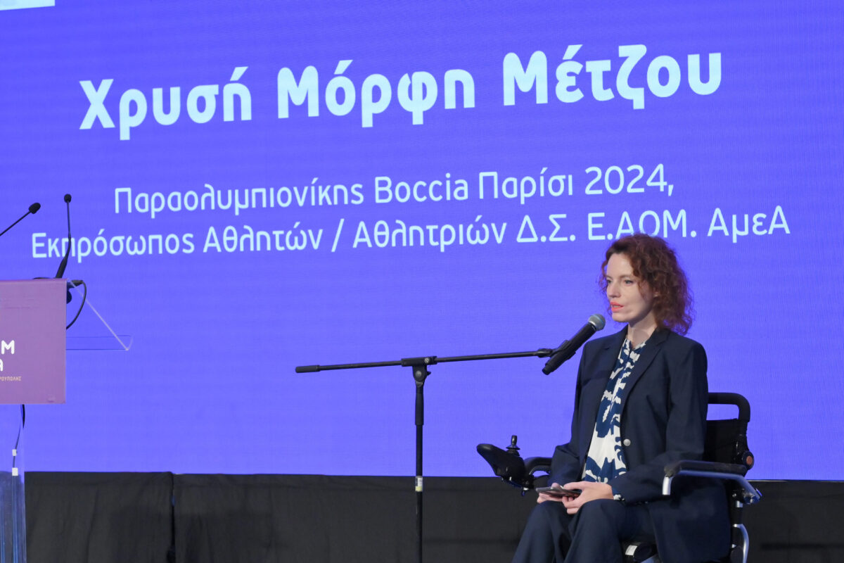 Η Παραολυμπιονίκης Χρυσή Μόρφη Μέτζου τόνισε ότι κάθε άτομο με αναπηρία που ασχολείται με τον αθλητισμό επιδεικνύει πράξη θάρρους. Υπογράμμισε ότι οι αθλητές με αναπηρία αντιμετωπίζουν πολλά εμπόδια όμως αντλούν δύναμη μέσα από τη σύνδεσή τους με την κοινωνία και μέσα από δομές όπως το Κέντρο ΑμεΑ που τους δίνουν τη δυνατότητα να προχωρούν και να διαπρέπουν.