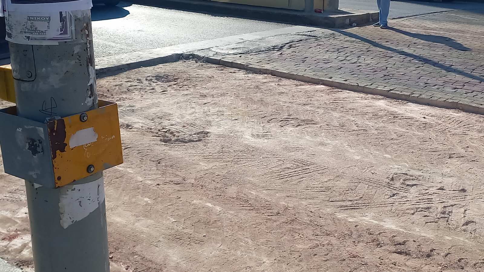 Υπενθυμίζεται ότι κατόπιν της σχετικής απόφασης του Δημοτικού Συμβουλίου, οι κυβόλιθοι θα αντικατασταθούν από έγχρωμο ασφαλτικό υλικό ως βέλτιστη λύση, ως προς τον χρόνο αποπεράτωσης και ως προς την αντοχή.