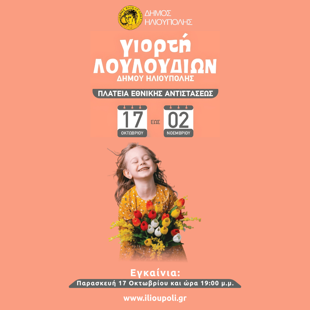 Η καθιερωμένη γιορτή των λουλουδιών που αγάπησαν οι δημότες και οι κάτοικοι του Δήμου Ηλιούπολης αλλά και όσοι επισκέπτονται την πόλη, θα διαρκέσει από την Παρασκευή 17 Οκτωβρίου έως την Κυριακή 2 Νοεμβρίου 2025 και αποτελεί πλέον θεσμό για την Ηλιούπολη.