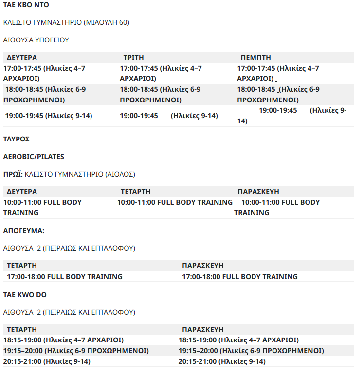 Οι ενδιαφερόμενοι μπορούν να δουν το αναλυτικό ημερολογιακό πρόγραμμα των αθλητικών προγραμμάτων πατώντας στις εικόνες παρακάτω: