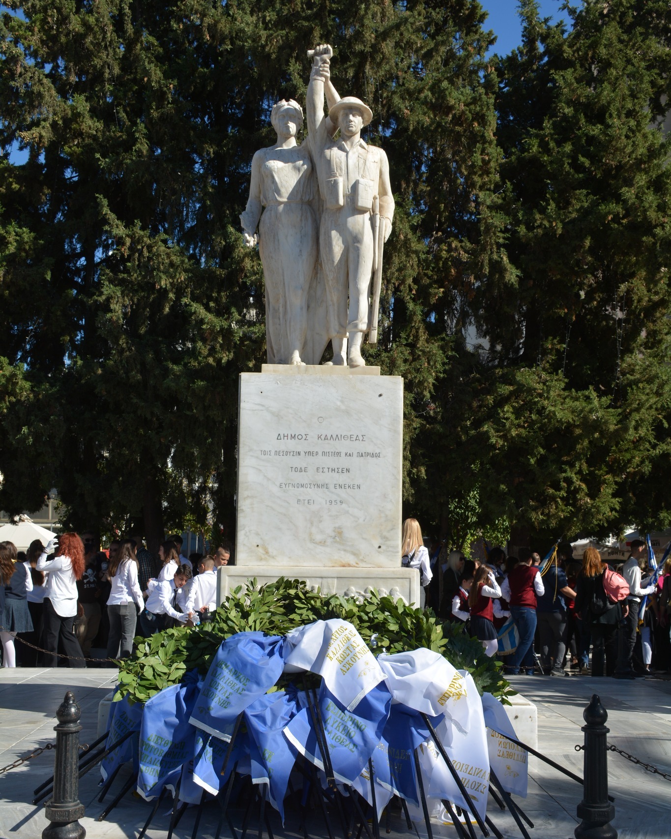 «Η Καλλιθέα τιμά τους Ηρωικούς νεκρούς του έπους του 1940. Ζήτω η 28η Οκτωβρίου! Ζήτω η Ελλάδα!»