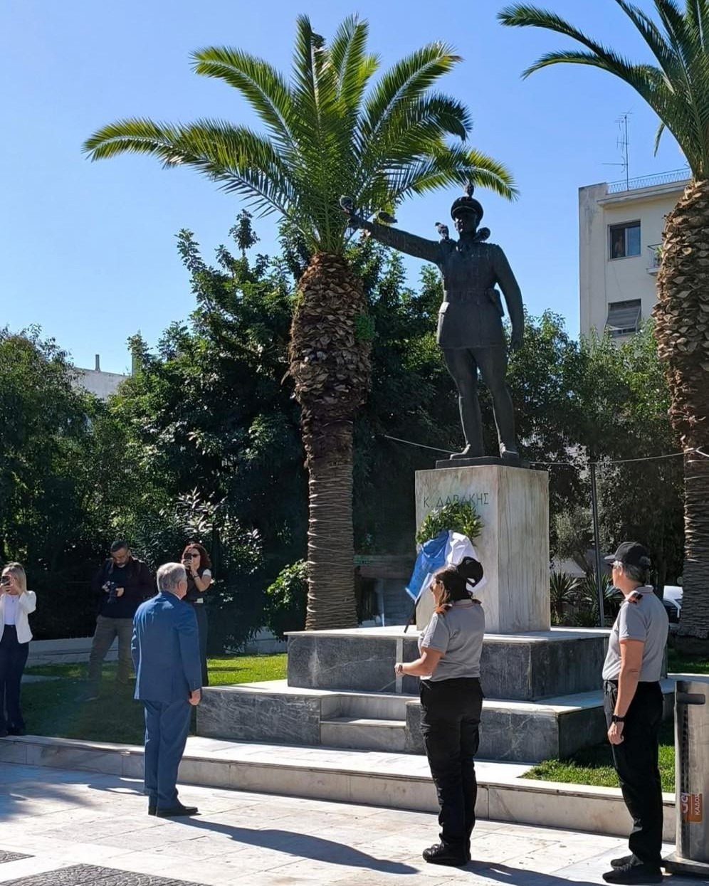 Πέραν από την καθιερωμένη κατάθεση στεφάνων στο Μνημείο των Ηρώων στην Πλατεία Κύπρου, ο δήμαρχος Καλλιθέας κ. Κώστας Ασκούνης κατέθεσε στεφάνι και στον ανδριάντα του Συνταγματάρχη Κωνσταντίνου Δαβάκη, στην ομώνυμη πλατεία, τιμώντας τη μνήμη και την προσφορά του στην Πατρίδα, τονίζοντας: