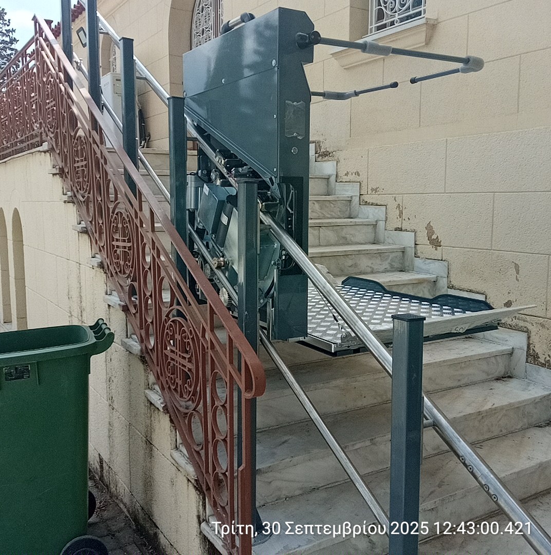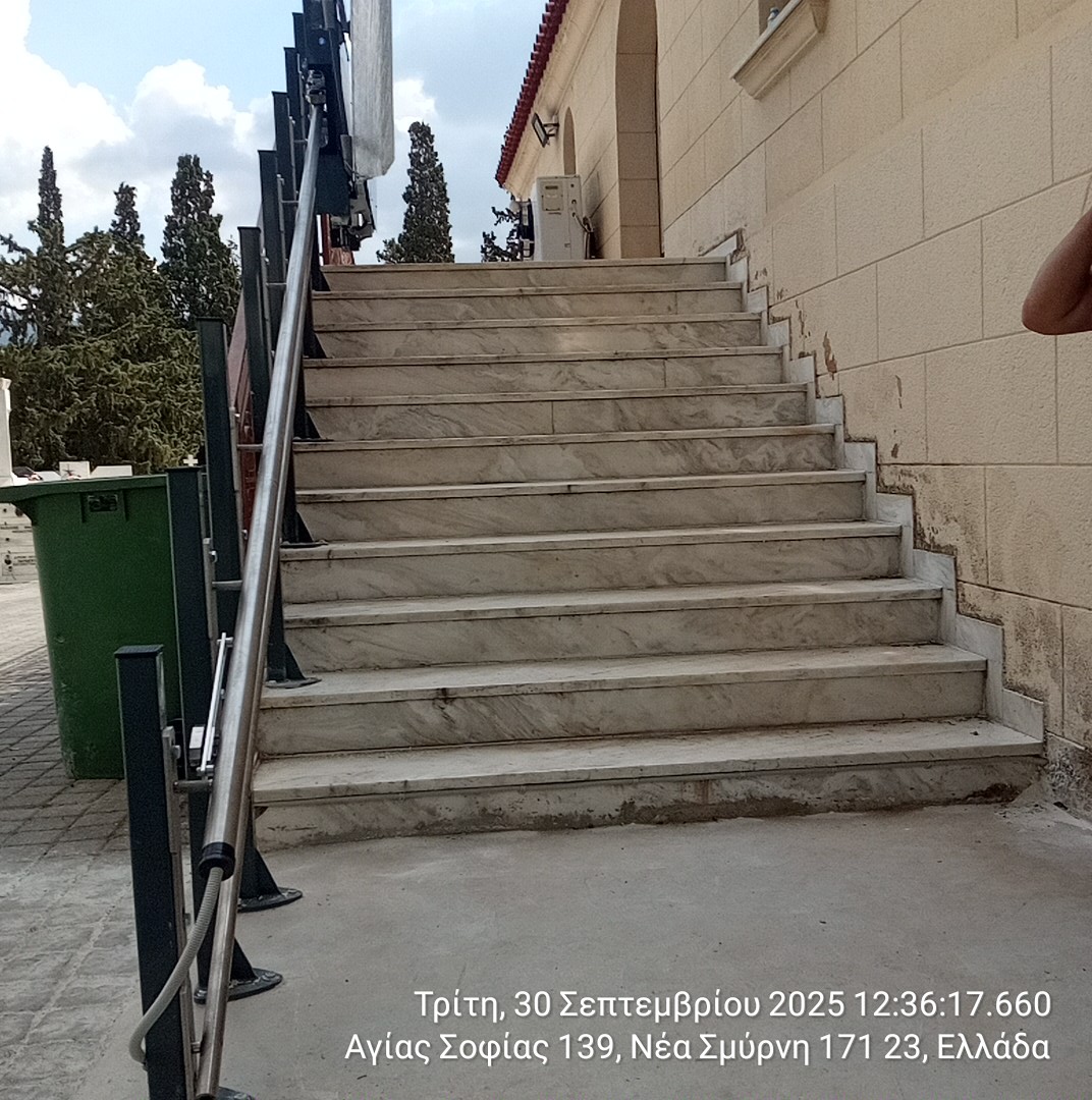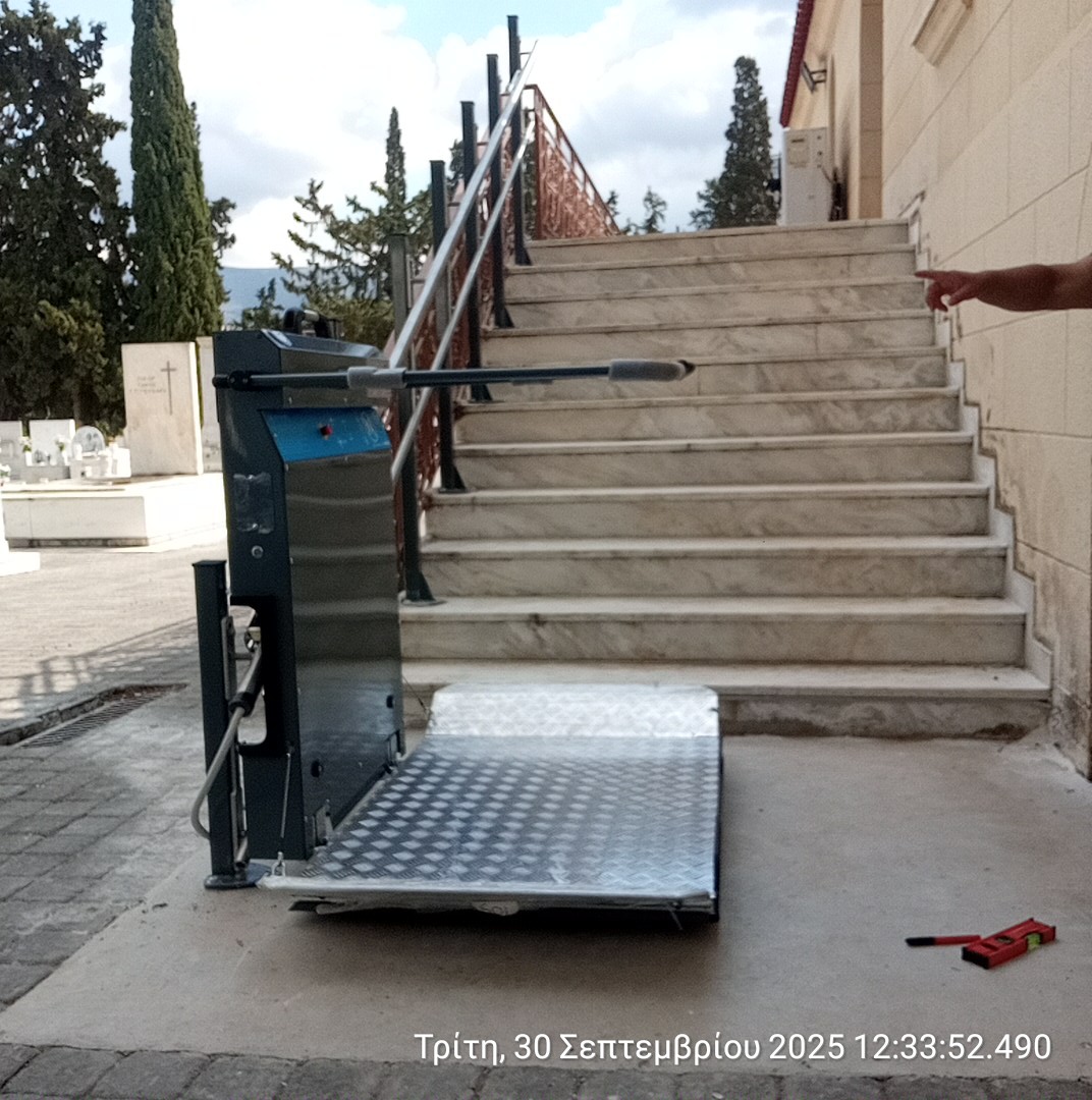 Στην τοποθέτηση αναβατορίου στα σκαλοπάτια της εκκλησίας των Ταξιαρχών του Δημοτικού Κοιμητηρίου προχώρησε ο Δήμος Νέας Σμύρνης, προκειμένου να εξυπηρετούνται άτομα με αναπηρία.