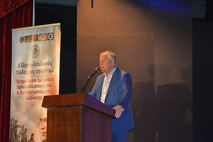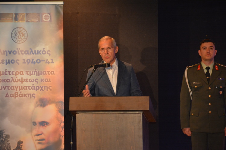 Στη συνέχεια, χαιρετισμό απηύθυνε ο υφυπουργός Εθνικής Άμυνας κ. Αθανάσιος Δαβάκης, ο οποίος αναφέρθηκε στην ανδρεία, την οξυδέρκεια και αυταπάρνηση του Συνταγματάρχη Κωνσταντίνου Δαβάκη που ενέπνευσε έναν ολόκληρο λαό με το παράδειγμά του κατά την έκβαση του Ελληνοϊταλικού Πολέμου του 1940. Ο κ. υφυπουργός έκανε ιδιαίτερη μνεία στα ιστορικά γεγονότα της Μάχης της Πίνδου και στην καθοριστική συμβολή του Κ. Δαβάκη στην αναχαίτιση της ιταλικής επίθεσης, υπογραμμίζοντας τον ηγετικό του ρόλο και το πνεύμα αυτοθυσίας που τον διέκρινε. Τέλος, αναφέρθηκε στην αναστήλωση της Οικίας Δαβάκη, επισημαίνοντας ότι αποτελεί ιστορικό και εθνικό χρέος για τις Ένοπλες Δυνάμεις.