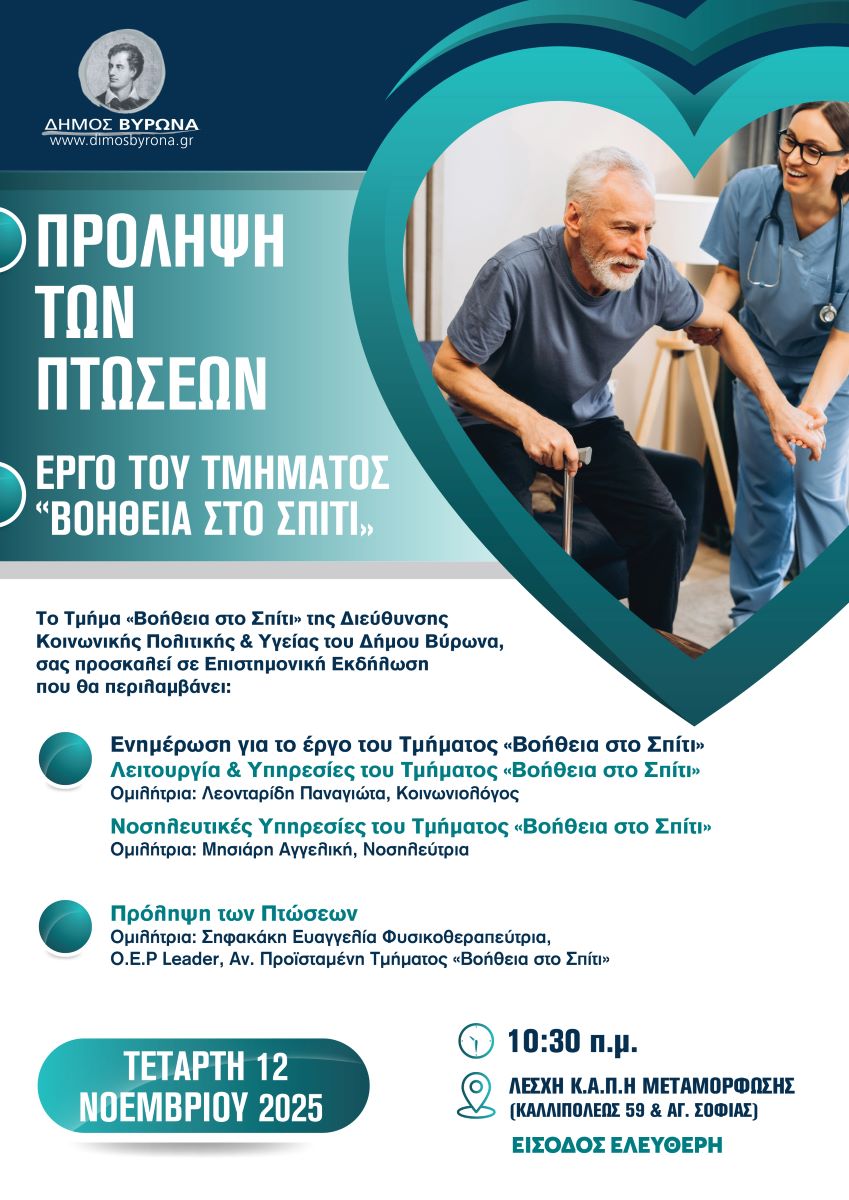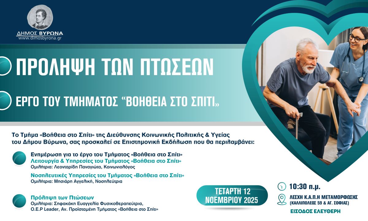 «Βοήθεια στο Σπίτι»: Εκδήλωση για την πρόληψη των πτώσεων ηλικιωμένων στον Βύρωνα