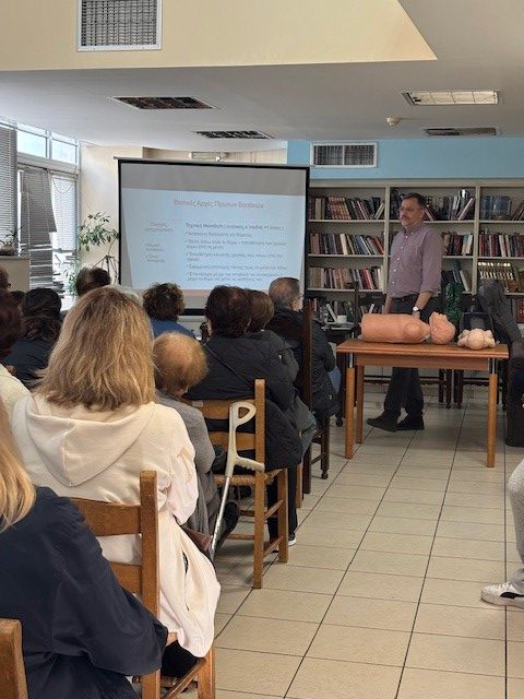 Με μεγάλη επιτυχία και ιδιαίτερο ενδιαφέρον των πολιτών πραγματοποιήθηκε η ενημερωτική ομιλία με θέμα «Πρώτες Βοήθειες – Επίδειξη ΚΑΡΠΑ (Καρδιοπνευμονική Αναζωογόνηση)», αναδεικνύοντας τη σημασία της ενημέρωσης και της πρόληψης για την προστασία της υγείας όλων.