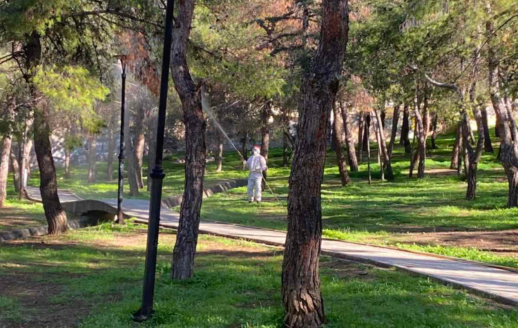 Οι εργασίες εκτελούνται στο πλαίσιο της προσπάθειας του Δήμου για την προστασία των πεύκων της πόλης από τις κάμπιες και τις βλαβερές, για τα δέντρα, συνέπειες από την ανάπτυξη αυτών.