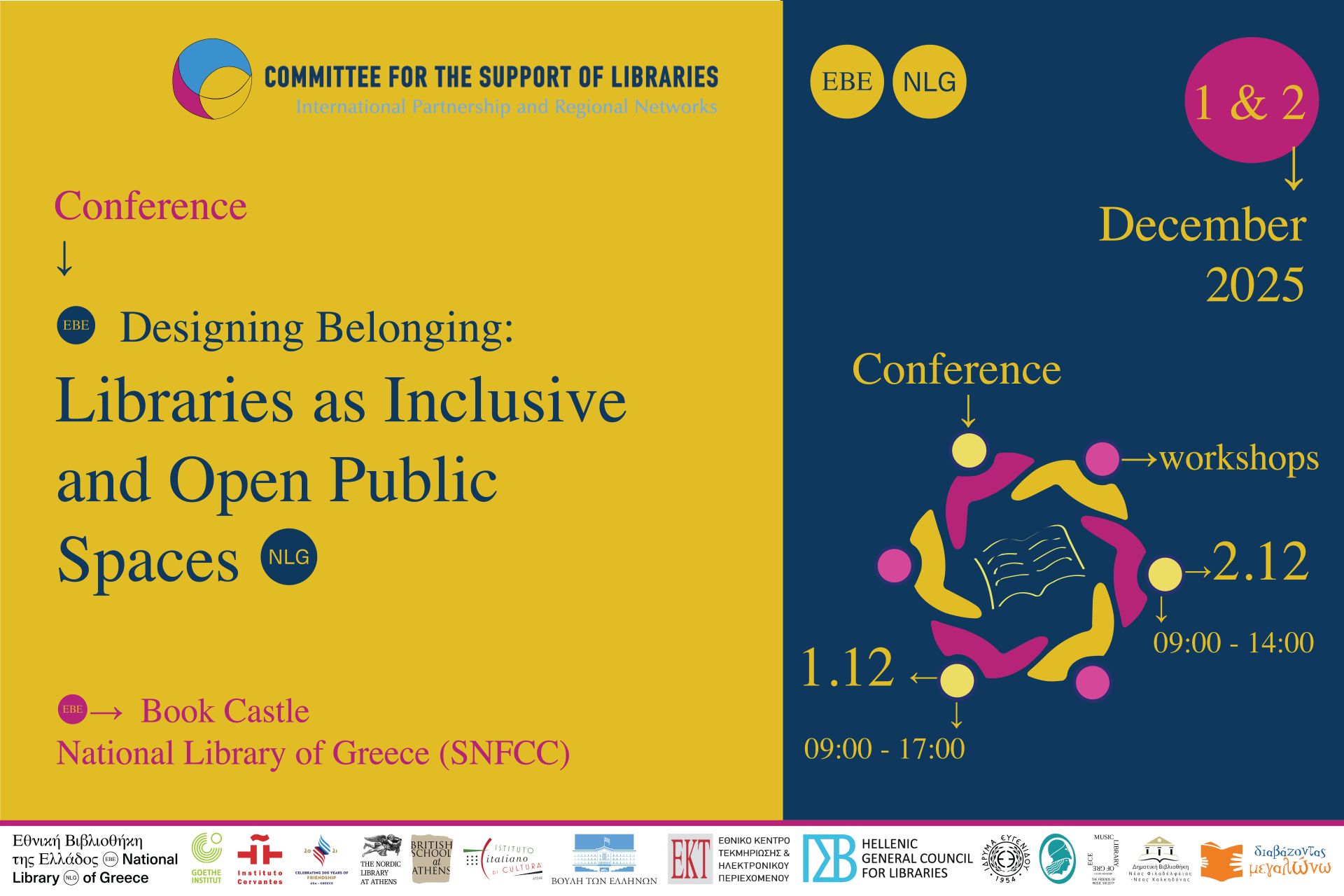 Η Οργανωτική Επιτροπή Ενίσχυσης Βιβλιοθηκών (ΟΕΕΒ) διοργανώνει το διεθνές συνέδριο «Designing Belonging: Libraries as Inclusive and Open Public Spaces», το οποίο θα διεξαχθεί 1 και 2 Δεκεμβρίου 2025, στην Εθνική Βιβλιοθήκη της Ελλάδος, στο Κέντρο Πολιτισμού Ίδρυμα Σταύρος Νιάρχος.