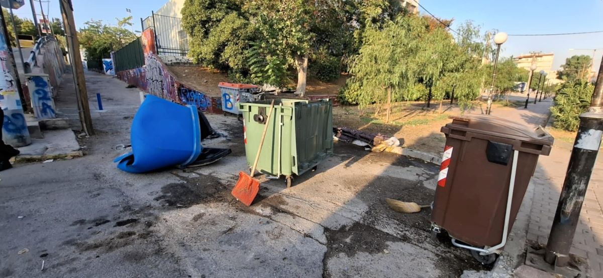 Η δημοτική Αρχή Βύρωνα τονίζει πως οι αρμόδιες υπηρεσίες του Δήμου προχώρησαν άμεσα στην απομάκρυνση των κατεστραμμένων κάδων και στον καθαρισμό των σημείων.