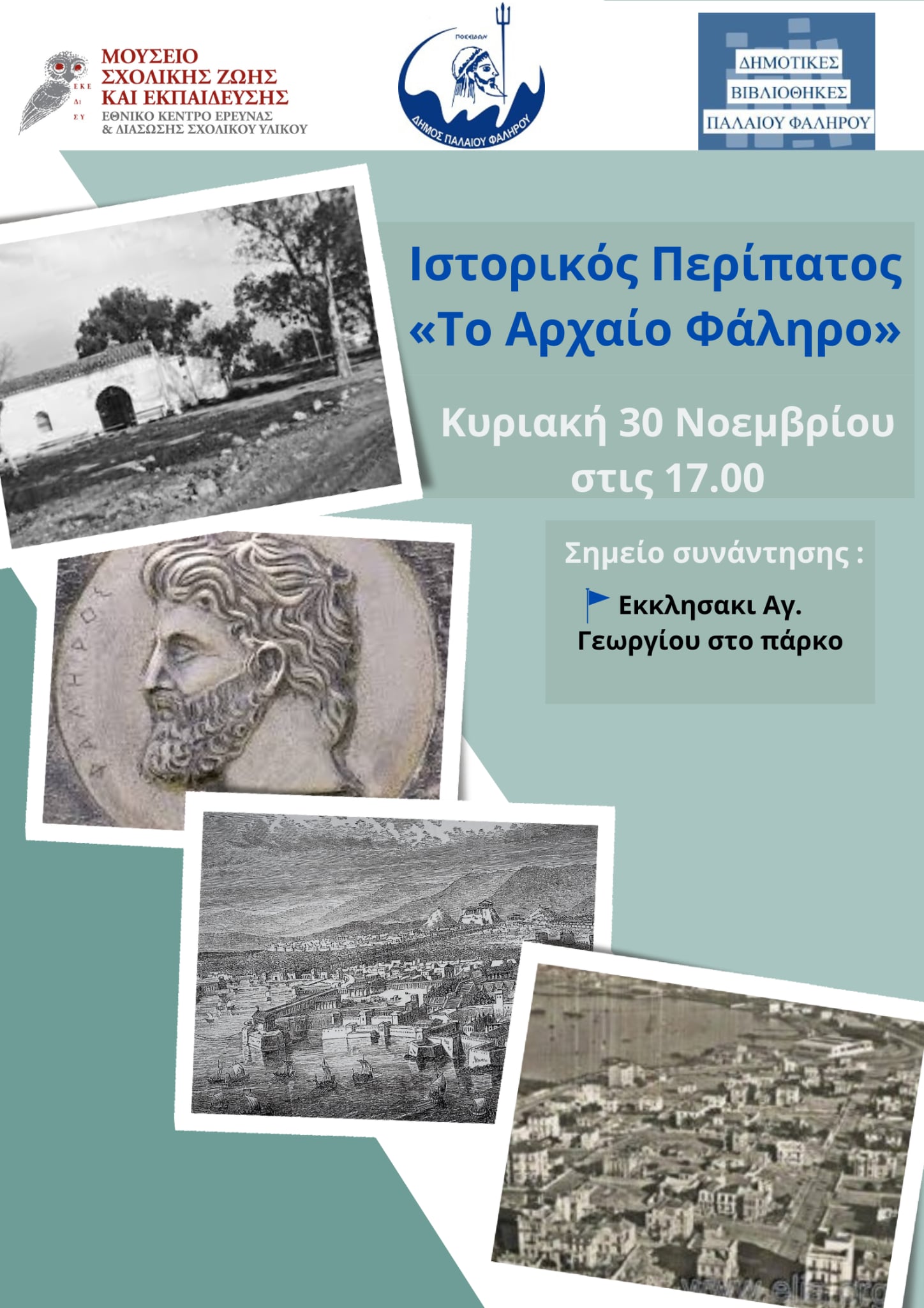 Ο Δήμος Παλαιού Φαλήρου, σε συνεργασία με τις Δημοτικές Βιβλιοθήκες της πόλης και το Μουσείο Σχολικής Ζωής και Εκπαίδευσης, διοργανώνουν έναν ιστορικό περίπατο με τίτλο «Γνωρίζοντας το αρχαίο Φάληρο».