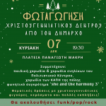 Θα υπάρχουν παράλληλα πλούσιες θεματικές δράσεις με χριστουγεννιάτικες φιγούρες, face painting, γλυκά κεράσματα και άλλες εκπλήξεις για τους μικρούς δημότες.