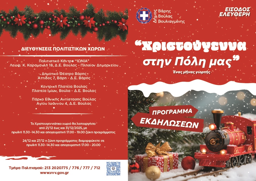 Σειρά χριστουγεννιάτικων εκδηλώσεων από το Δήμο Βάρης-Βούλας-Βουλιαγμένης