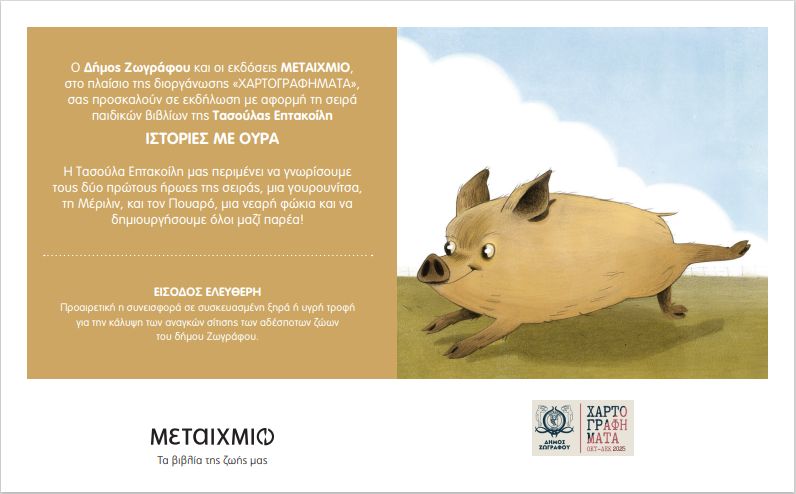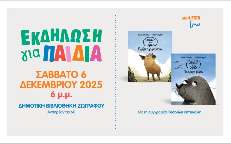 Τα αγαπημένα φθινοπωρινά «Χαρτογραφήματα» του Δήμου Ζωγράφου συνεχίζουν με την παρουσίαση για το παιδικό κοινό της πόλης, του βιβλίου «Ιστορίες με ουρά» της Τασούλας Επτακοίλη σε εικονογράφηση Στέλλας Στεργίου.