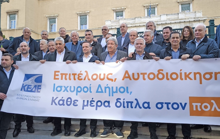 Δήμαρχοι από όλες τις μεριές της χώρας βρέθηκαν μπορστά στη Βουλή, προκειμένου να διαμαρτυρηθούν για την υποχρηματοδότηση της αυτοδιοίκησης