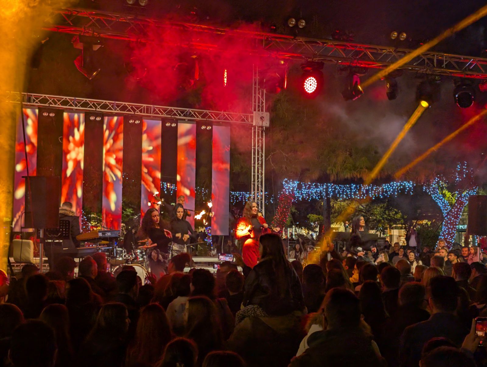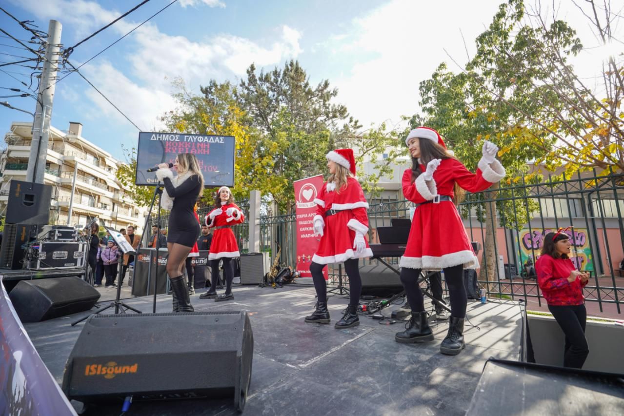 Το τρενάκι του Δήμου Γλυφάδας ντυμένο γιορτινά, καθώς και άμαξες του Αη Βασίλη κυκλοφορούσαν στους δρόμους, μπαλόνια, ζογκλέρ, ξυλοπόδαροι και δράσεις για τα παιδιά συμπλήρωναν το γιορτινό σκηνικό, ενώ στη 1:00 σήμερα το μεσημέρι το κέφι απογειώθηκε με τη συναυλία της Ντίνας Ευαγγελοπούλου, καθώς και της Ιρένε Τροστ, η οποία μάλιστα τραγούδησε αφιλοκερδώς και τα χρήματα πήγαν στο ΒΗΜΑ ΖΩΗΣ.