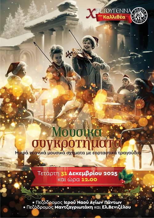 Ο Δήμος Καλλιθέας υποδέχεται τις ημέρες των εορτών με ένα πλούσιο εορταστικό πρόγραμμα εκδηλώσεων, από τις 24 Δεκεμβρίου 2025 έως τις 4 Ιανουαρίου 2026.
