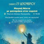 Μία χριστουγεννιάτικη βραδιά γεμάτη φως και ευχές διοργανώνει το Τμήμα Πολιτισμού, Αθλητισμού & Περιβάλλοντος του Δήμου Αγίου Δημητρίου, με πρωταγωνιστές τα ιπτάμενα φαναράκια.