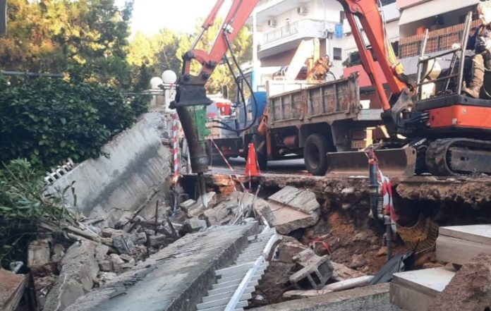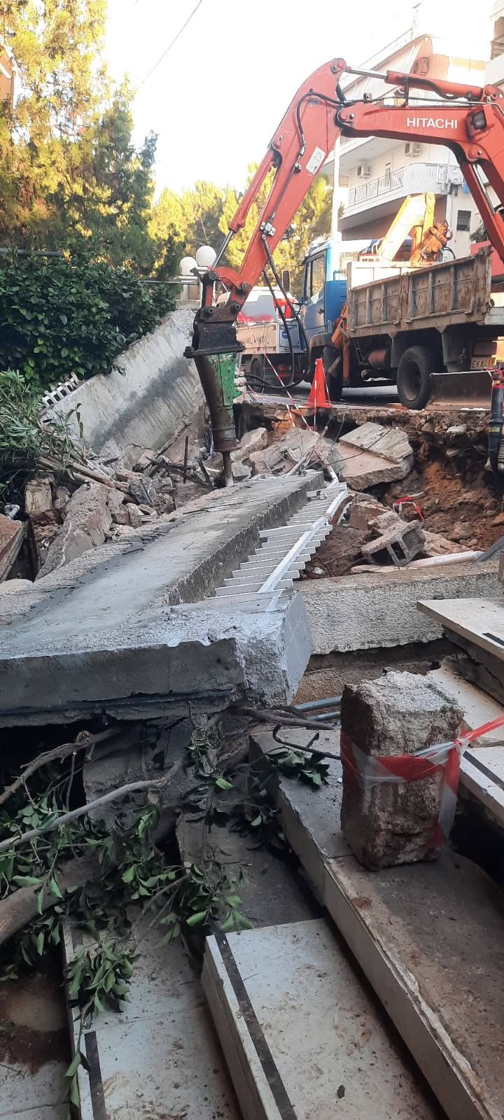 Παρόλο που τυπικά δεν αποτελεί αρμοδιότητα και ευθύνη ενός Δήμου, ήδη τα συνεργεία του Δήμου μας έχουν στρωθεί στη δουλειά, σπάνε και απομακρύνουν τα μπάζα, καθαρίζοντας τον χώρο. Στη συνέχεια ο Δήμος θα κατασκευάσει εξαρχής τη μάντρα της πολυκατοικίας, με σωστή θεμελίωση πλέον, ώστε οι συμπολίτες μας να είναι όσο το δυνατόν πιο ασφαλείς και θωρακισμένοι σε επόμενη θεομηνία.