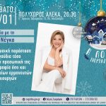 Μία συναυλία με τη Γιώτα Νέγκα διοργανώνει ο Δήμος Ζωγράφου, το πρώτο Σάββατο του νέου έτους, με τραγούδια τόσο από την προσωπική δισκογραφία της Γιώτας Νέγκα όσο και κορυφαίων ερμηνευτών και δημιουργών.