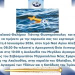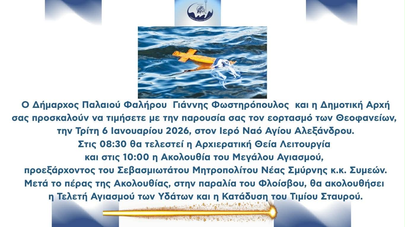 Με κάθε επισημότητα θα εορταστούν τα Θεοφάνια στον Δήμο Παλαιού Φαλήρου, την Τρίτη 6 Ιανουαρίου 2026, στον Ιερό Ναό Αγίου Αλεξάνδρου.