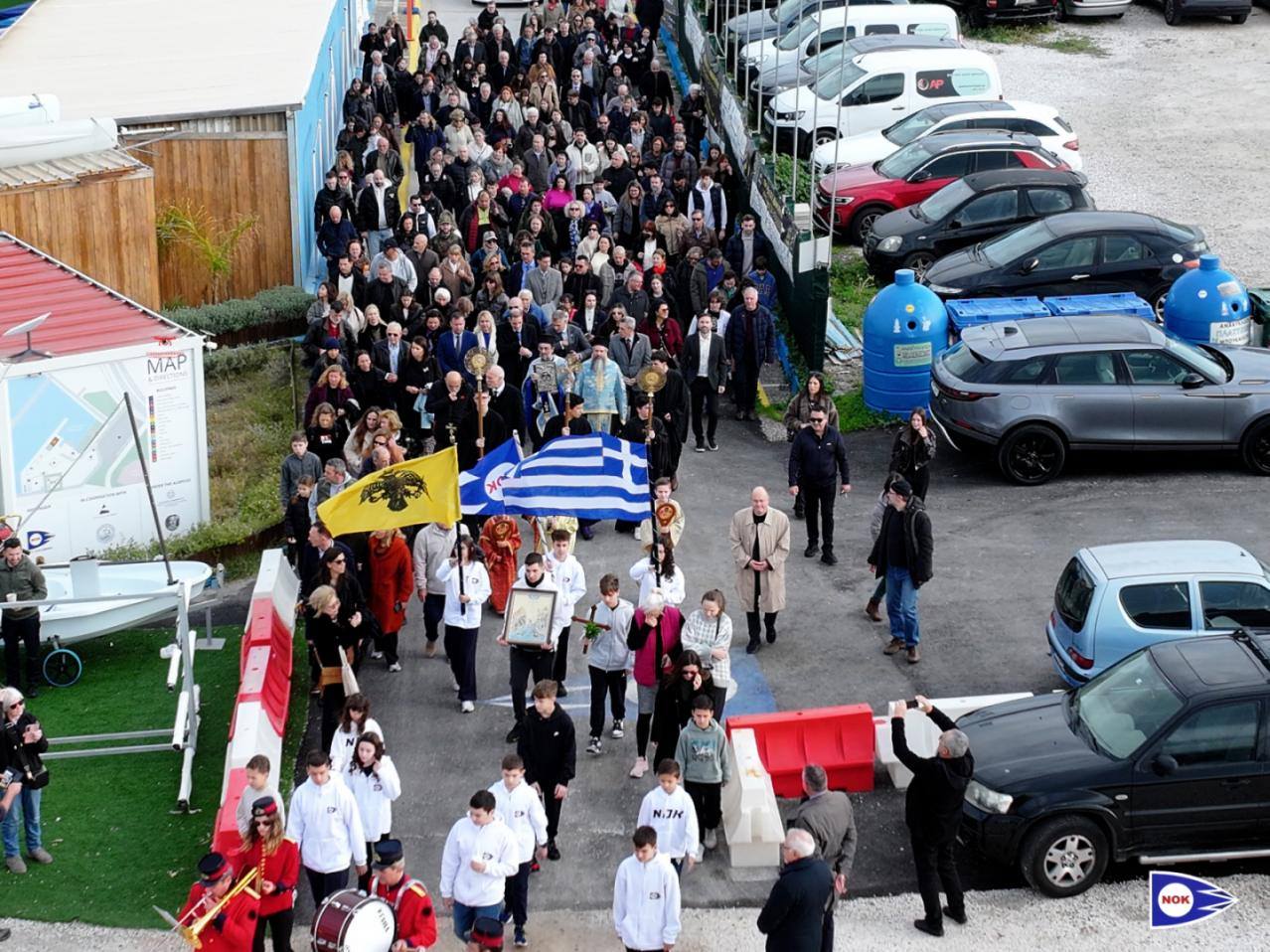 Οι εγκαταστάσεις του ΝΟΚ, στη Μαρίνα Αλίμου, από νωρίς το πρωί γέμισαν από γωνιά σε γωνιά από δεκάδες οικογένειες που έζησαν από κοντά, την ημέρα των Θεοφανίων, την κατάδυση του Σταυρού και τον μέγα αγιασμό των υδάτων.