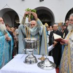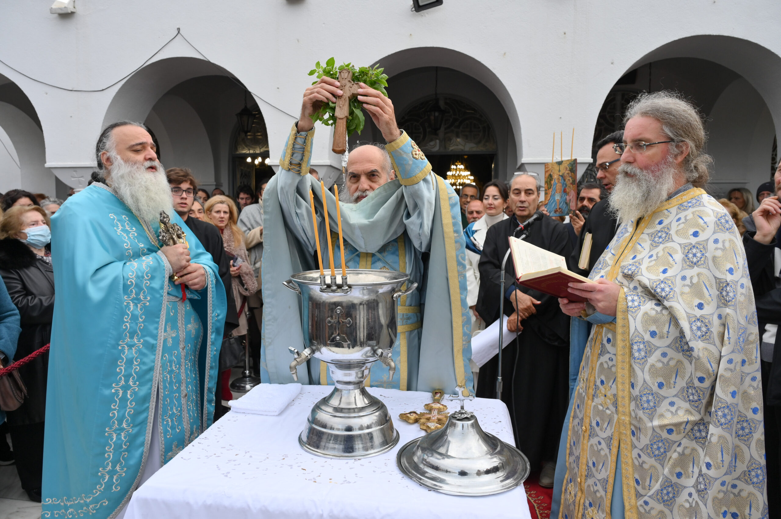 Στον Ιερό Ναό Κοιμήσεως Θεοτόκου στην Αργυρούπολη εψάλη η Θεία Λειτουργία και στη συνέχεια ο αγιασμός των υδάτων τελέστηκε έξω από τον Ιερό Ναό.