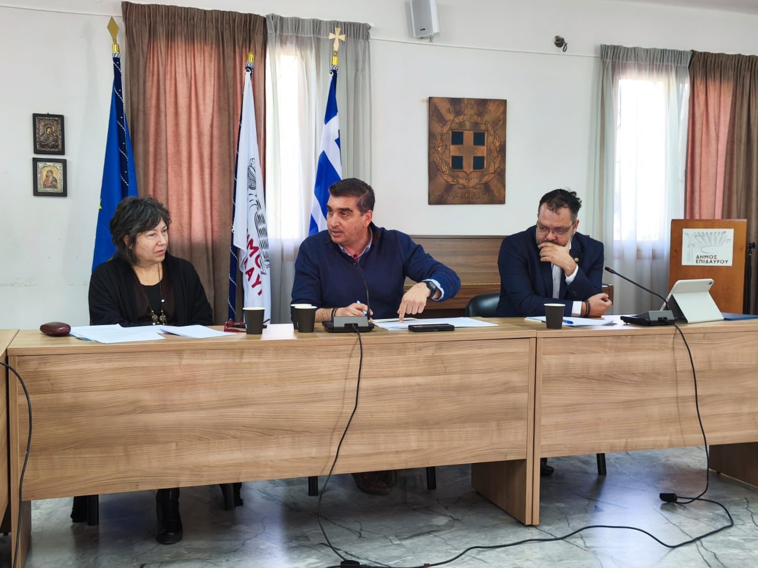 Από την πλευρά του Δήμου Επιδαύρου συμμετείχαν ο αντιδήμαρχος Καθαριότητας, Περιβάλλοντος και Καθημερινότητας του Πολίτη Μιχαήλ Κίνας, ο αντιδήμαρχος Οικονομικών, διοικητικής Αναπλήρωσης και Εποπτείας Δημοτικής Λειτουργίας Χρήστος Μαγγέλης, ο αντιδήμαρχος Τεχνικών Έργων Δημοτικής Ενότητας Ασκληπιείου και Τουρισμού Κωνσταντίνος Γαλάνης,ο πρόεδρος Κοινότητας Νέας Επιδαύρου Παναγιώτης Παπαργύρης, ο δημοτικός σύμβουλος–εντεταλμένος σύμβουλος Αγροτικής Οδοποιίας και Μηχανημάτων Έργου Ηλίας Μαργιόλας και ο πρόεδρος ΔΕΥΑ Επιδαύρου Γεώργιος Παύλου.