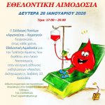 Όπως κάθε χρόνο, έτσι και το 2026 ο Σύλλογος Ποντίων «Αργοναύται – Κομνηνοί» διοργανώνει μία εθελοντική αιμοδοσία για την Τράπεζα Αίματος που διαθέτει στο Λαϊκό Νοσοκομείο.