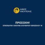 Η δημοτική Αρχή της πόλης εφιστά την προσοχή όλων όσων διέρχονται από την Ελευθερίου Βενιζέλου, καθώς η κατάσταση «κρίνεται ιδιαιτέρως επικίνδυνη λόγω των επικρατούντων καιρικών φαινομένων».