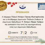 Πρώτα θα πραγματοποιηθεί η παρουσίαση του νέου βιβλίου «Αχαρτογράφητα νερά» της Άννας Γαλανού και με το πέρας της εκδήλωσης, θα ακολουθήσει η κοπή της πρωτοχρονιάτικης πίτας.