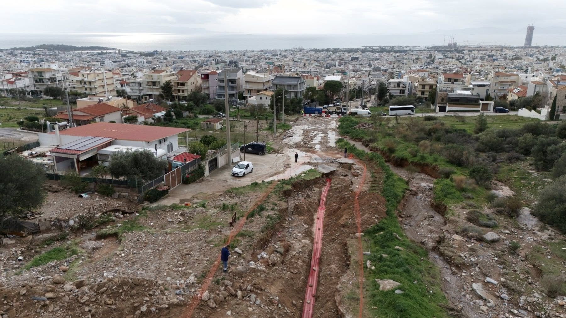 Όπως επισημαίνεται, το έργο υπογειοποίησης του δικτύου δημιούργησε ένα τεχνητό φράγμα τουλάχιστον 1.200 κυβικών μέτρων χώματος και φερτών υλικών σε ρέμα, πάνω από την οδό Μετσόβου.