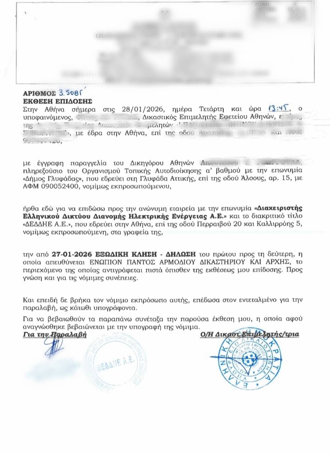 Όπως τονίζεται χαρακτηριστικά, ενδεχόμενη μη ανταπόκριση του ΔΕΔΔΗΕ δεν θα εκληφθεί απλώς ως παράλειψη, αλλά ως επιβεβαίωση ότι το έργο υλοποιήθηκε με διαδικασίες που δεν ήταν σύννομες και χωρίς να πληρούνται ακόμη και βασικές τεχνικές προδιαγραφές.