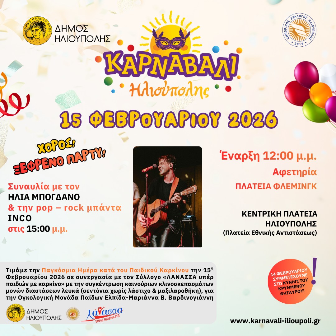 Στο πλαίσιο της κοινωνικής δράσης, την ημέρα διεξαγωγής του Καρναβαλιού (15 Φεβρουαρίου 2026), ο Δήμος τιμά την Παγκόσμια Ημέρα κατά του Παιδικού Καρκίνου, με την συγκέντρωση καινούριων κλινοσκεπασμάτων μονών διαστάσεων λευκά για την Ογκολογική Μονάδα Παίδων Ελπίδα-Μαριάννα Β. Βαρδινογιάννη, σε συνεργασία με τον Σύλλογο ΛΑΝΑΣΣΑ υπέρ παιδιών με καρκίνο.