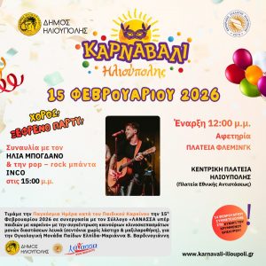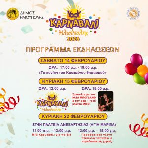 Την Κυριακή 22 Φεβρουαρίου 2026 και ώρα 11:00 π.μ. θα λάβει χώρο το «Μίνι καρναβάλι για παιδιά και παραδοσιακό γλέντι» στην Πλατεία Ανεξαρτησίας.
